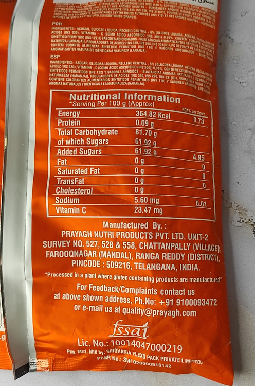 * آب نبات پرتقالی سینتو یک تنقلات خوشمزه و سالم است که با طعم طبیعی پرتقال و غنی شده با ویتامین C تولید میشود.