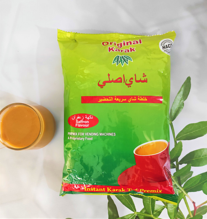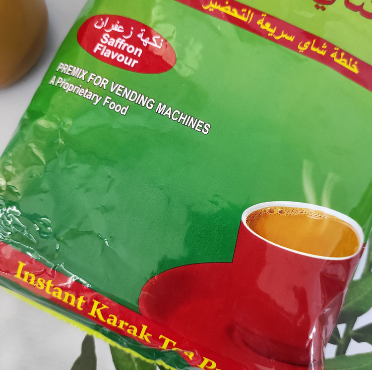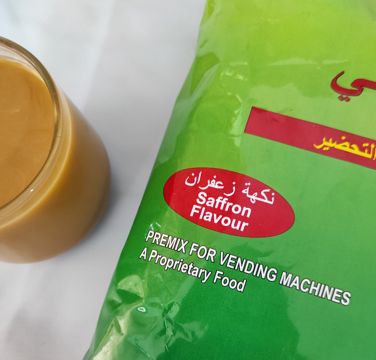 مواد تشکیل دهنده: چای فوری، شیر، شکر و طعم دهنده زعفران